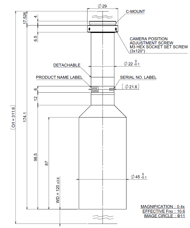 * 成像侧容许弥散圆直径40μm.