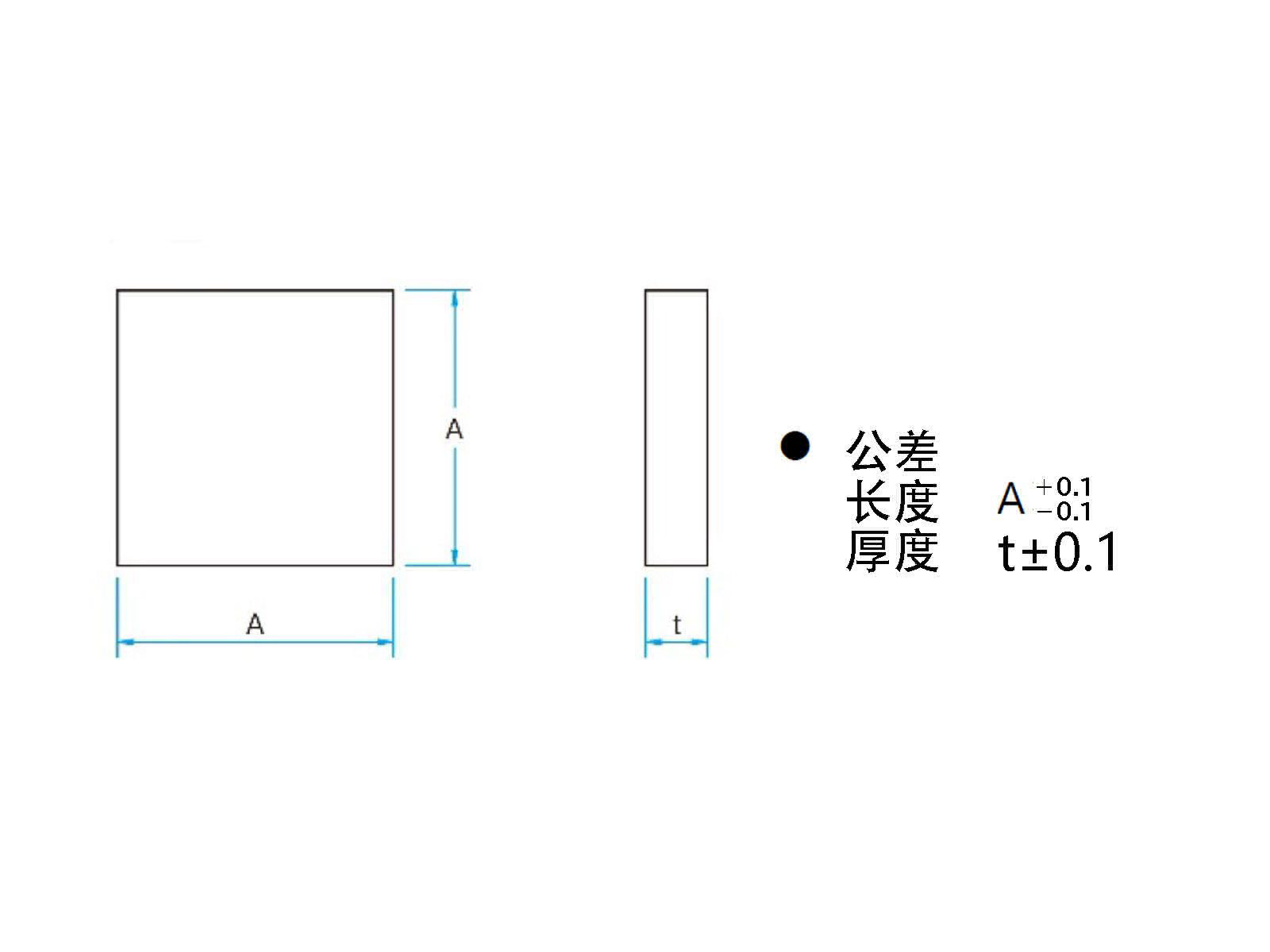 | 技术指标 | | 材质 | 光学玻璃(IOP材料) | | 形状 | 平面基板 | | 表面状态 | 两面: 抛光面 | | 长度 A | □30mm | | 厚度 t | 0.8mm |
