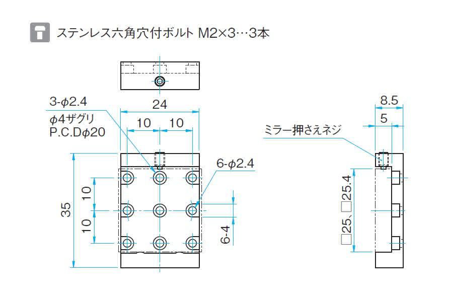 | 技术指标 | | 主要材料 | 铝合金 | | 表面处理 | 黑色氧化 | | 适用元器件尺寸 | □25 mm, □25.4 mm | | 自重 | 0.01 kg |