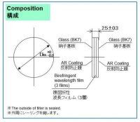 ◦複屈折性を持たせた樹脂フィルムを積層させ、光学特性が優れた基板の間に挟み込んで接合しています。