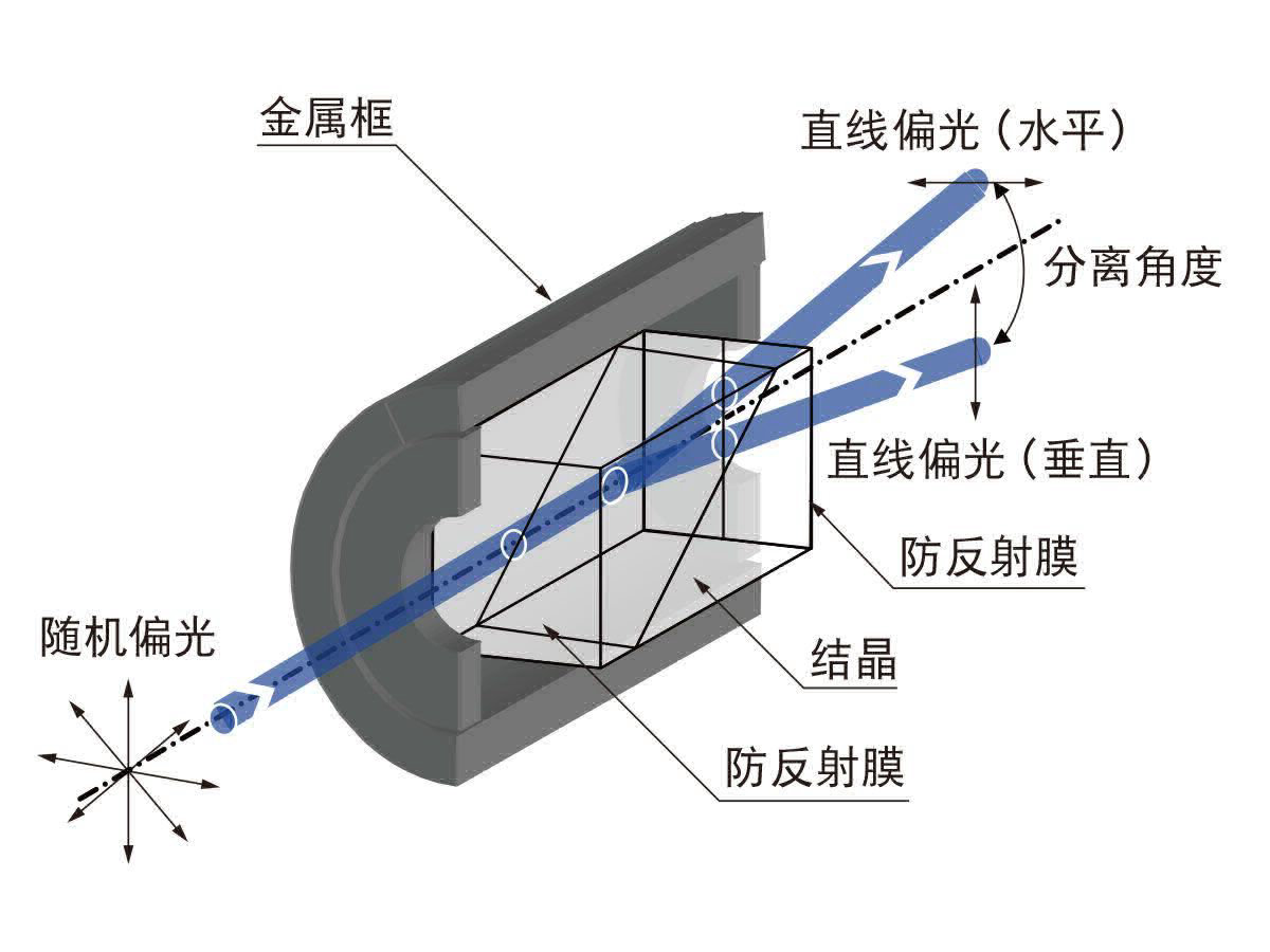 - 出射光束与入射光轴会成某一分离角度。不同的偏光方向,光束偏离的方向相反。