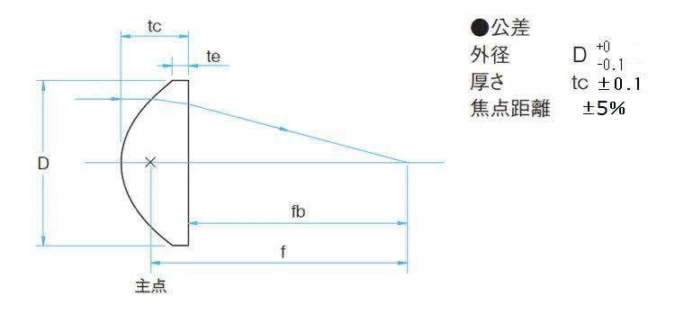 | 技术指标 | | 材质 | S-BSL7 | | 偏心 | <5′ | | 镀膜 | 无镀膜 | | 表面质量 | 60μm-400μm | | 设计波长 | 587.56nm | | 有效直径 | φ17mm | | 外径 φD | φ20mm | | 焦距 f | 40mm | | 后焦距 fb | 36.7mm | | NA | 0.21 | | 边缘厚度 te | 2.52mm | | 中心厚度 tc | 5.0mm | | 反面 | 平面 | | 形状误差 | ±10μm |