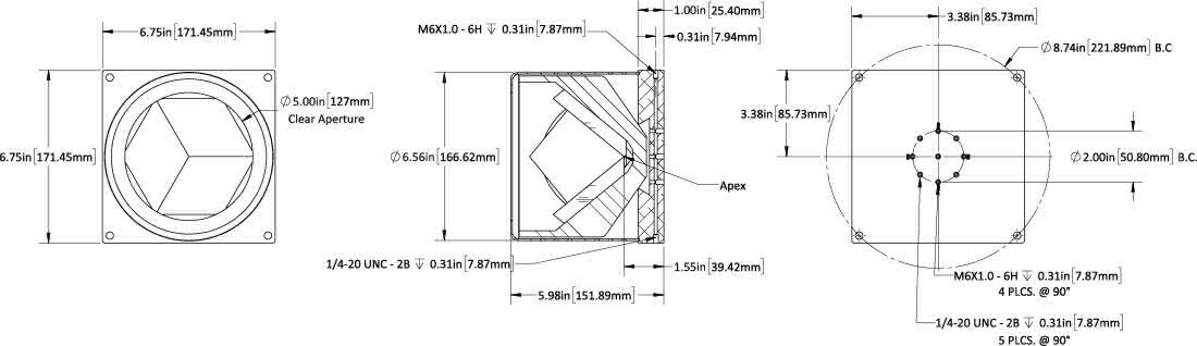 | 技术指标 | | 元件材质 | 硬质玻璃 ( 派热克斯®玻璃等 ) | | 镜筒材质 | 铝合金 | | 表面质量 | 80 - 50 | | 镀膜 | A: 增强铝 (400 - 700 纳米) | | 有效直径 | 直径127毫米 | | 光束偏角 | 5英寸 | | 反射波面精度p-v ( @633 纳米 ) | 0.45 - 18.0 纳米 |