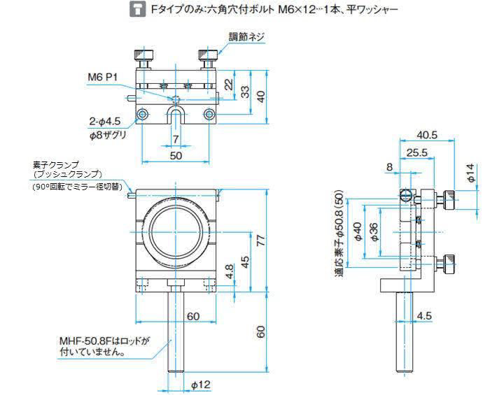 - 用于45度入射的分光镜时,透过光束会被遮挡。此时,推荐选用MHG-NP或MHAN