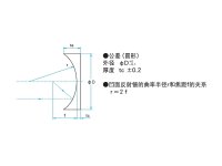 | 技术指标 | | 材质 | BK7 | | 基板面型精度 | 正面(凹面)λ/4 反面(平面)λ/4 | | 曲率半径误差 | ±1% | | 镀膜 | 无镀膜 | | 有效范围 | 外径的90% | | 表面质量 | 20−10 | | 外径 φD | φ25mm | | 边缘厚度 te | 5mm | | 中心厚度 tc | 4.9mm | | 曲率半径 r | 800mm | | 焦距 f | 400mm |