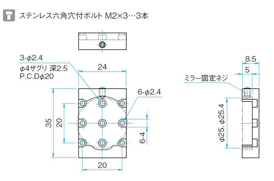 | 技术指标 | | 主要材料 | 铝合金 | | 表面处理 | 黑色氧化 | | 适用元器件尺寸 | φ25 mm, φ25.4 mm | | 自重 | 0.01 kg |